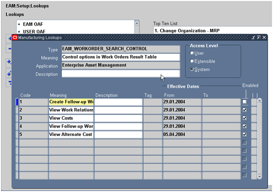 Self serviste assetten iş emri oluşturulmamasını sağlamak için aşağıdaki lookuptaki etkinlikleri kaldırıyoruz.