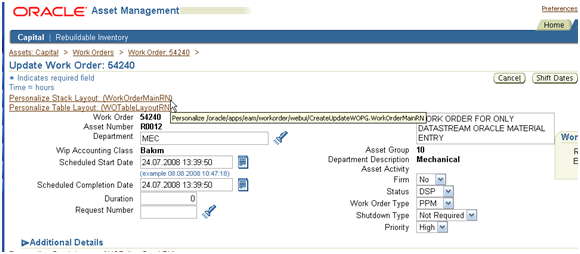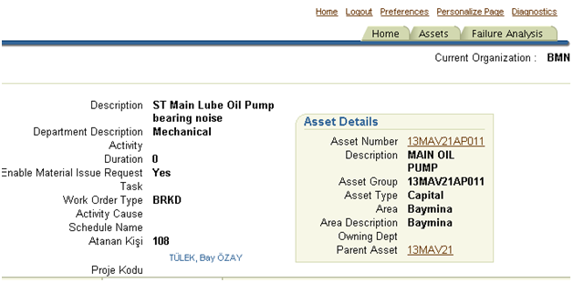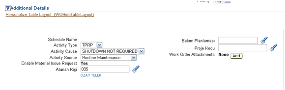 Örneğin bu ekranda departman statu firm, work order type alanlarının read only olması isteniyor.