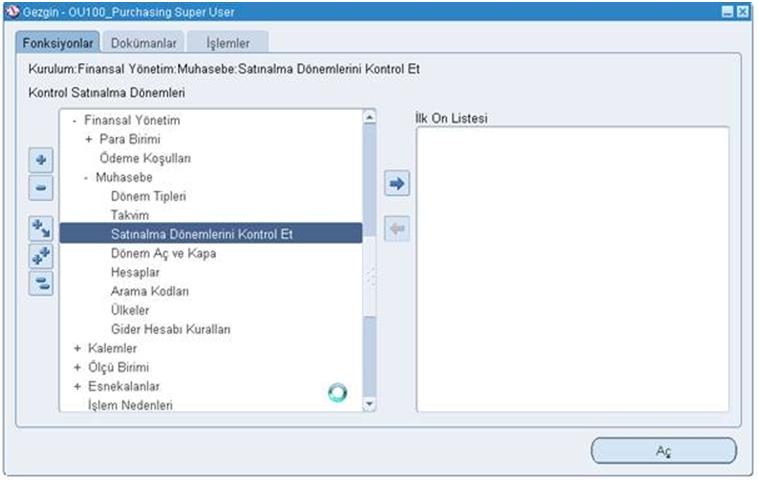 Satın Alma Dönemleri için satın alma sorumluluğu ile sisteme girilir. Satınalma dönemlerini kontrol et fonksiyonu ile dönemler açılır veya kapatılır.