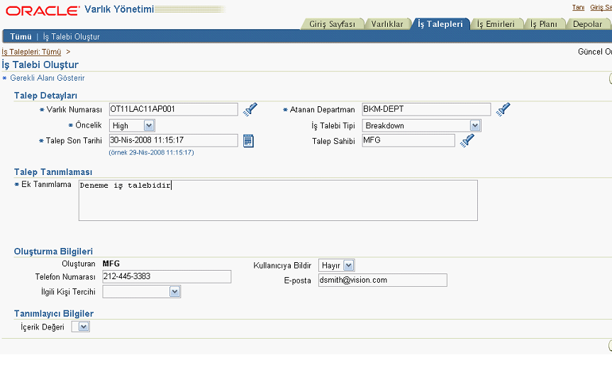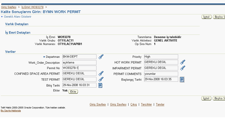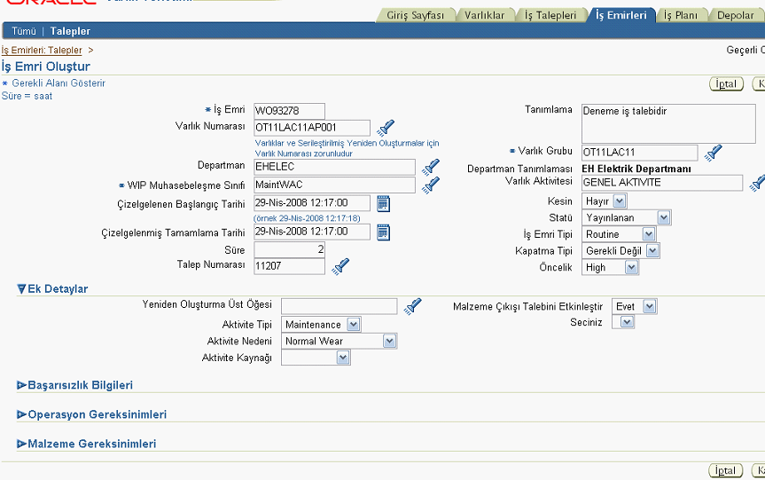 Talep numarası kısmına ilgili talep numarası yazılır ve “Git” tuşuna basılır. İlgili talep açılır. Telbi ya açık olan bir iş emrine bağlayabiliriz yada iş emri oluşturabiliriz.