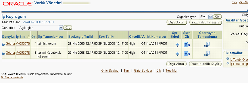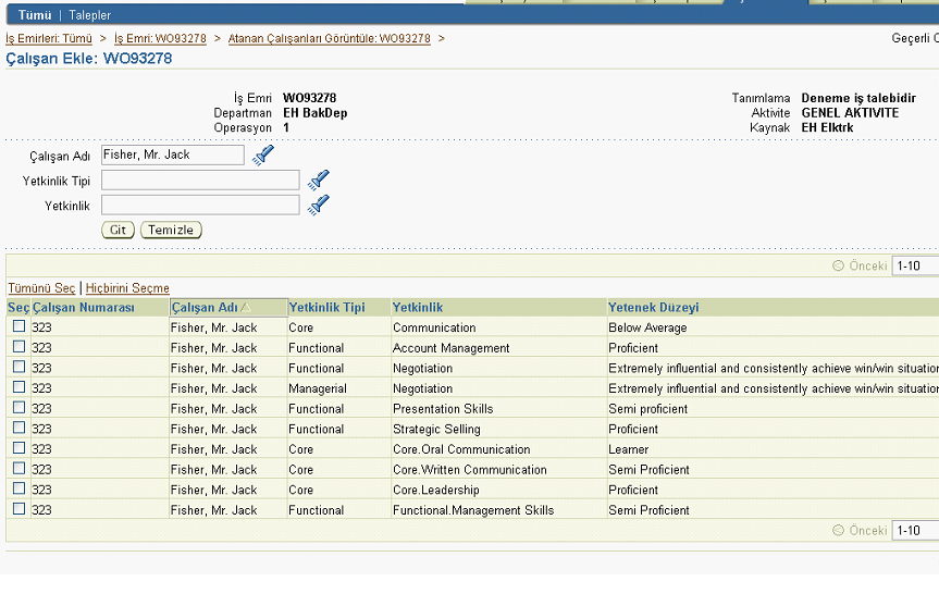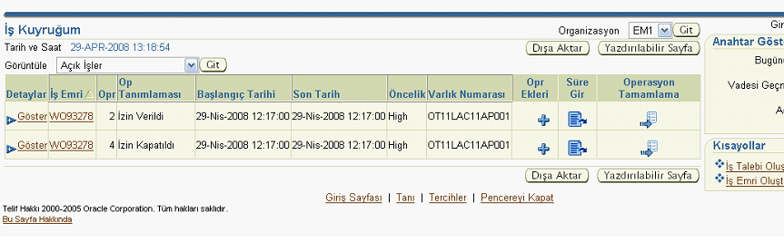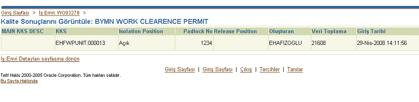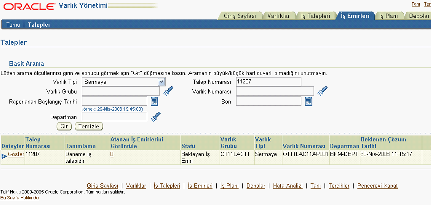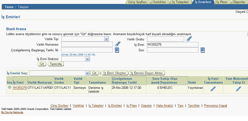 Daha sonra iş emirleri kısmında ilgili iş emri numarası girilerek süzülür.