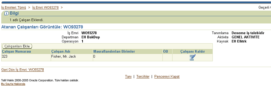 Atanan çalışanları görüntüle tıklanır. Açılan ekranda Çalışanları Ekle tıklanır.
