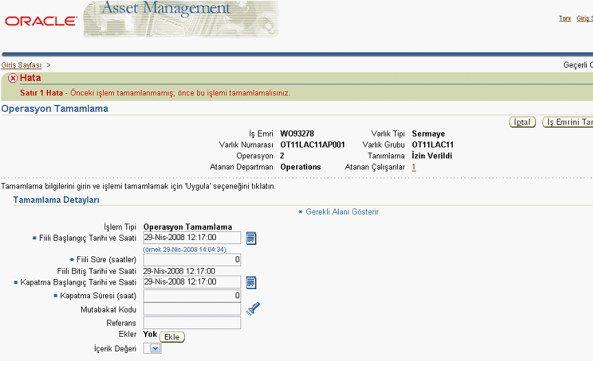 Görüldüğü gibi hata aldık. Operasyon 1’den itibaren tamamlama işlemini başlatalım.