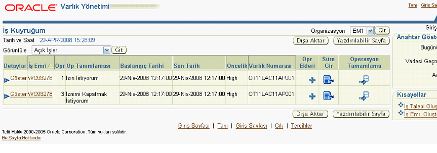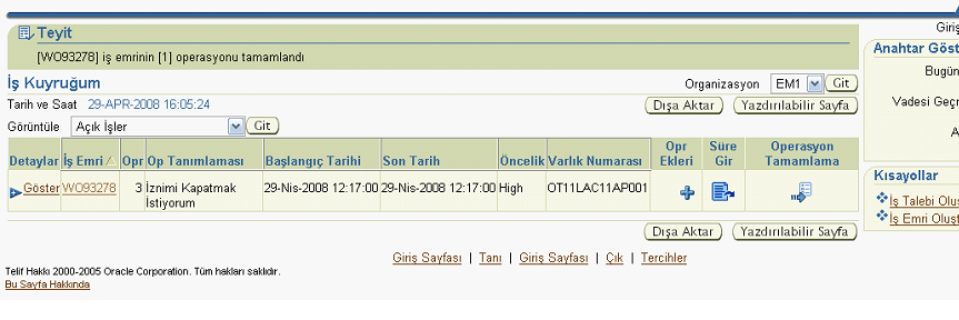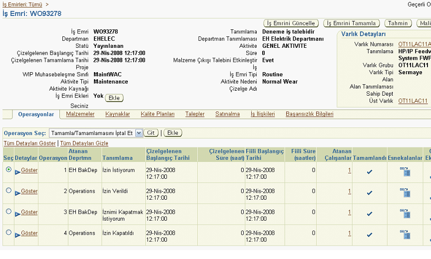Bu örnekte bekleyen iş emrine çevrilmiştir.