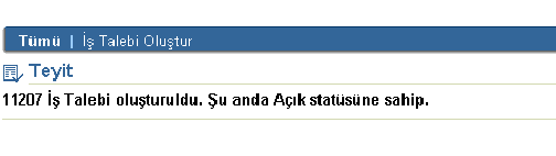11207 numaralu iş talebi oluşturuldu. Hala açık statüsüne sahip. Onay hiyerarşisindeki kullanıcı ya da ilgili sorumluluğa sahip olan kullanıcılara bildirim gider.