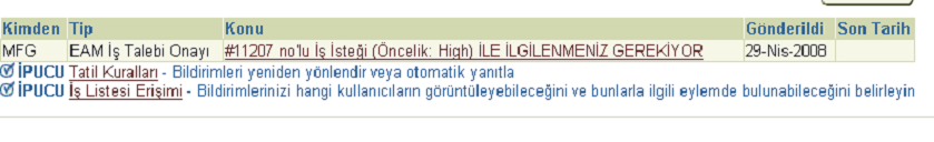 İlgili kullanıcı ile sisteme girildiğinde bildrimler kısmında aşağıdaki gibi bir detay görülür.