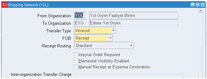 “Internal Order Required” tikli ise sadece internal order açar. Organizasyonlar arası transfer işlemine izin vermez.