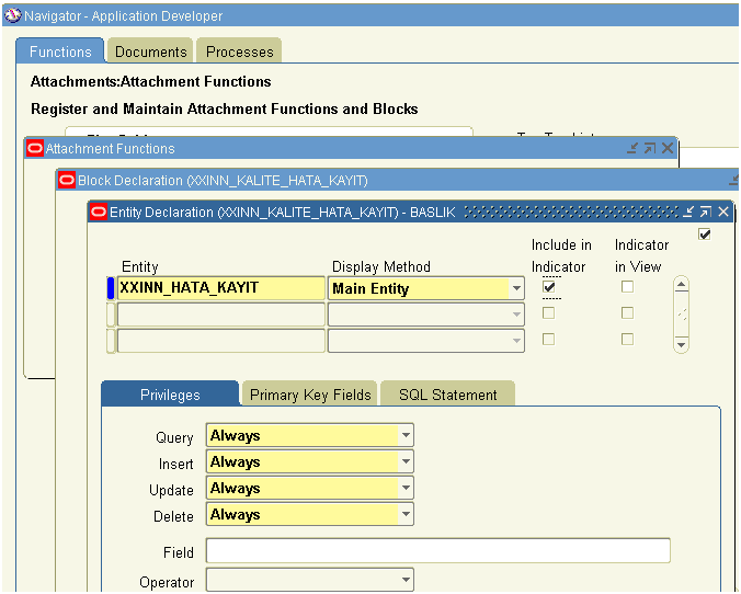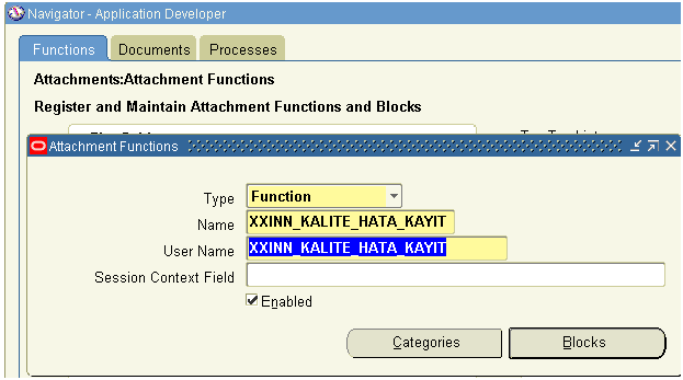 Daha sonraki işlemimiz “Attachment Functions” tanımlaması yapmak.