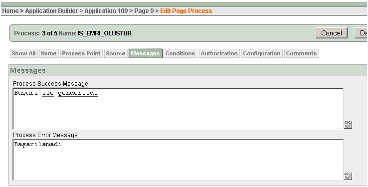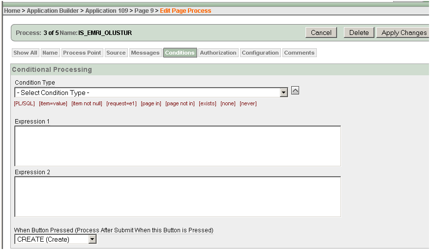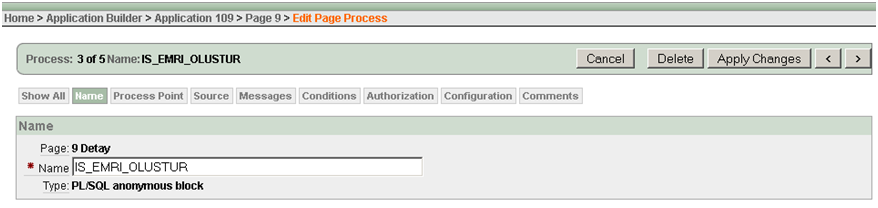 Processes alanından IS_EMRI_OLUSTUR adıyla PL/SQL anonymous block oluşturulur.